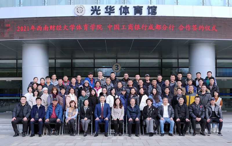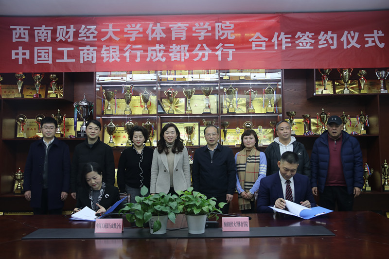 2021年1月21日下午,西南财经大学LEwin乐玩与中国工商银行成都分行合作签约仪式暨体育科学论文报告会在西南财经大学柳林校区光华体育馆会议室举行。中国工商银行成都分行副行长何逸、机构部副总经理郭茜、大运金融服务中心副总经理王刚、温江支行行长何晓涛、副行长徐佳,西南财经大学党委常委副校长李永强,LEwin乐玩院长兼直属党支部书记杨远波,财务处副处长廖涛,LEwin乐玩的副院长周正宏、副院长阴涛,以及LEwin乐玩全体教师出席本次签约仪式。签约仪式由LEwin乐玩院长助理毛艳主持。