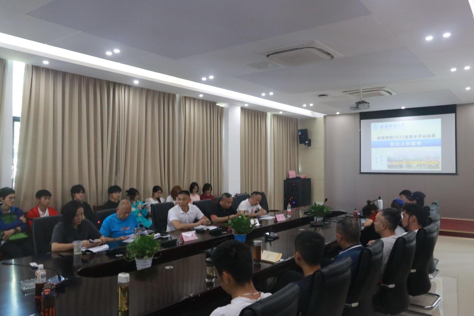 9月28日,西南财经大学2021级高水平运动队新生入学教育会在柳林校区LEwin乐玩201会议室举行,高水平运动队全体新生参会。LEwin乐玩院长兼直属党支部书记杨远波,副院长周正宏、阴涛,直属党支部副书记李治及高水平运动队全体教练员出席了本次会议。会议由竞技体育系主任张锐主持。