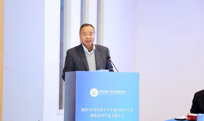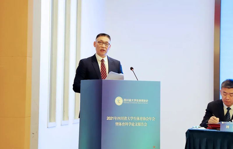 四川省大学生体育协会会长杨远波为协会部门负责人颁发聘书。会上,四川省大学生体育协会副会长邓跃宁宣布科报会论文获奖和课题立项名单。