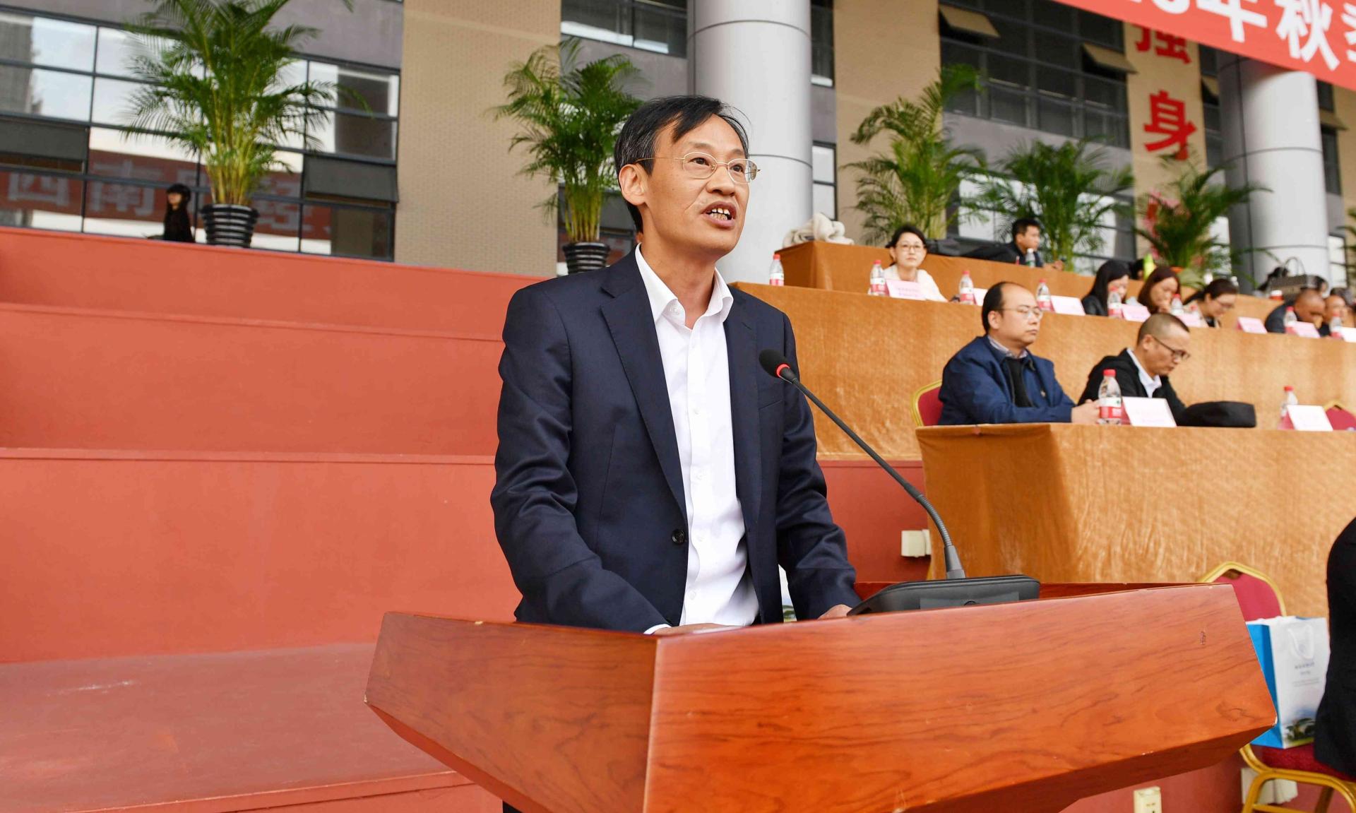 27日下午,运动会圆满结束,桂富强致闭幕辞。他希望同学们不断涵养堪当民族复兴重任的志气、骨气和底气,牢固树立健康第一的理念,养成良好的锻炼习惯,常邀同窗伙伴相聚绿茵场,共同奏响“西财梦”与“强国梦”的协奏曲。