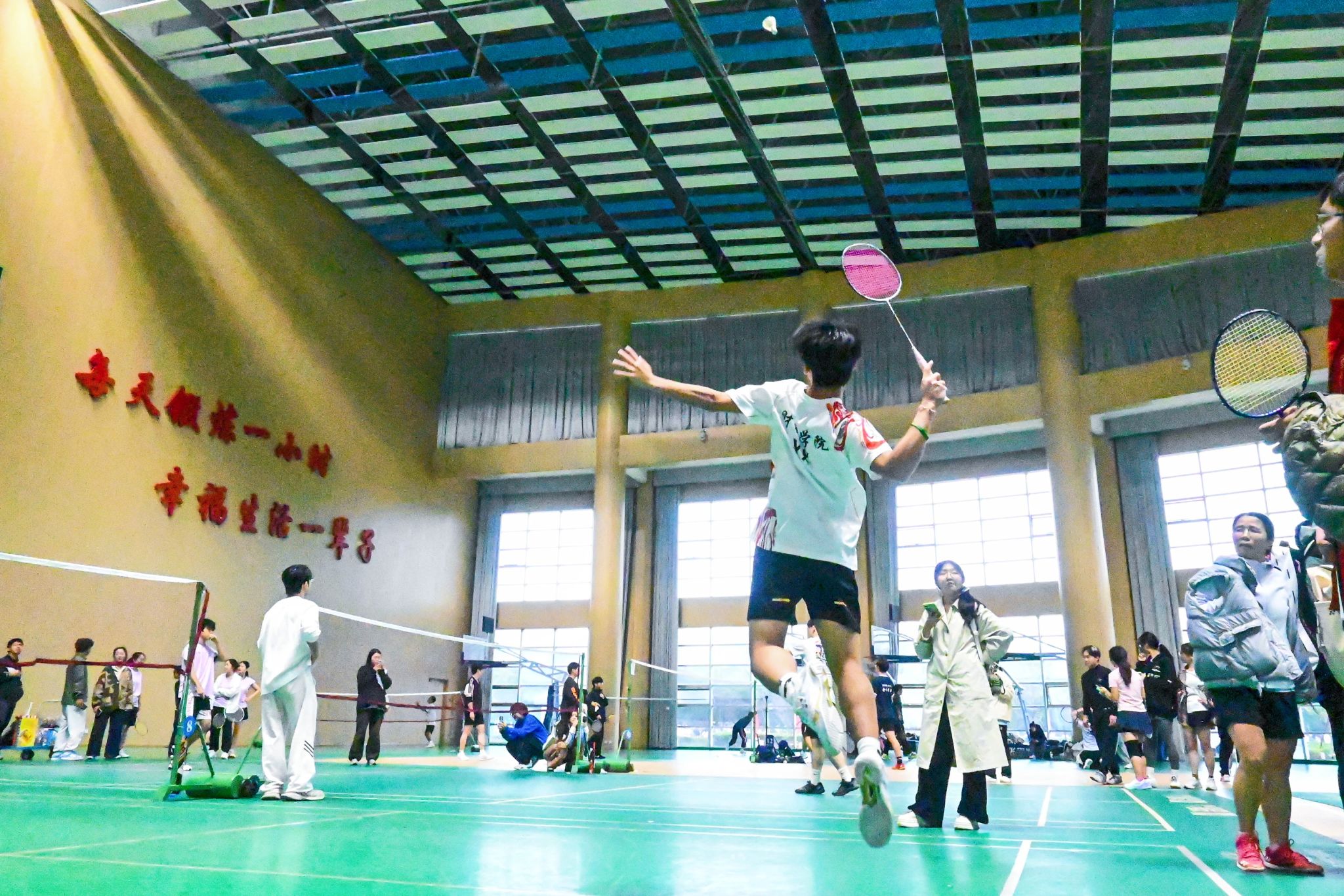 本届运动会设有田径、网球、乒乓球、羽毛球、台球、定向越野、阳光跑、集体跳绳、拔河和仰卧起坐等40个竞赛项目,参赛人数超2万人次,充分激发了师生参与热情。校友代表重返赛场,为运动会增添温情,贺百年母校荣光。赛场上,运动健儿生动诠释“更快、更高、更强——更团结”的奥林匹克格言,奋勇争先;赛场外,观赛众人齐声欢呼加油呐喊,燃情助力。全体师生在竞争中释放激情,在协作中凝聚力量,以昂扬姿态绘就奋进图景,让体育精神在校园持续传递。